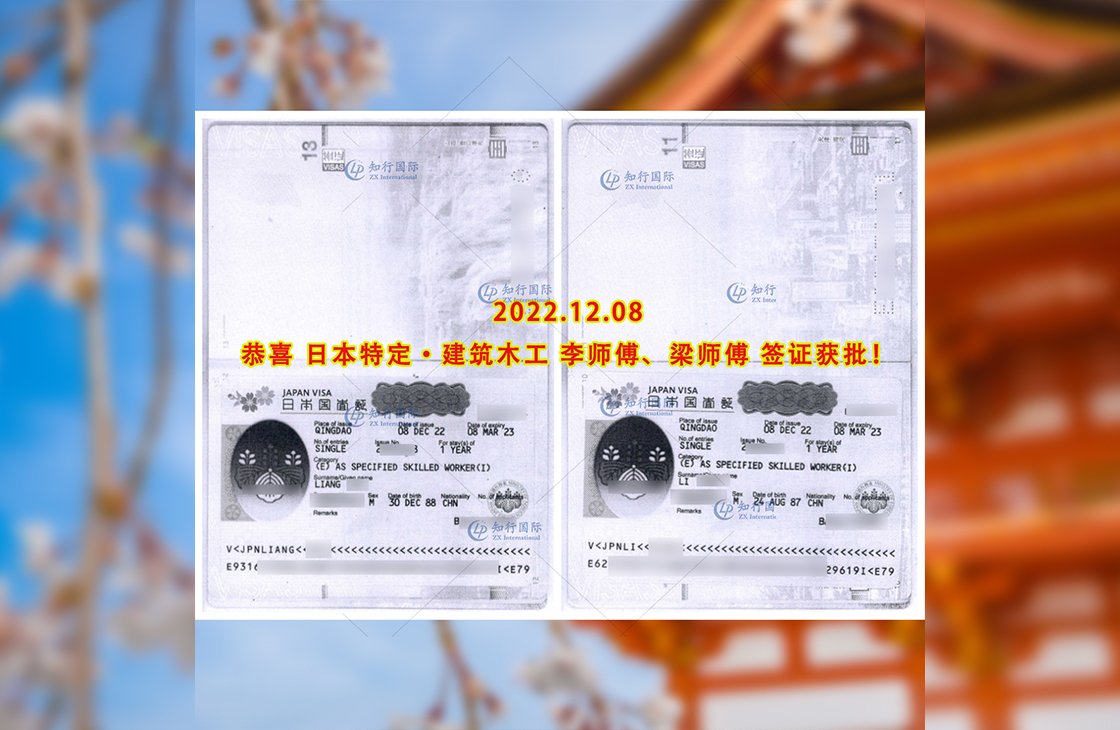 恭喜日本特定-建筑木工 李先生、梁先生 成功出境!